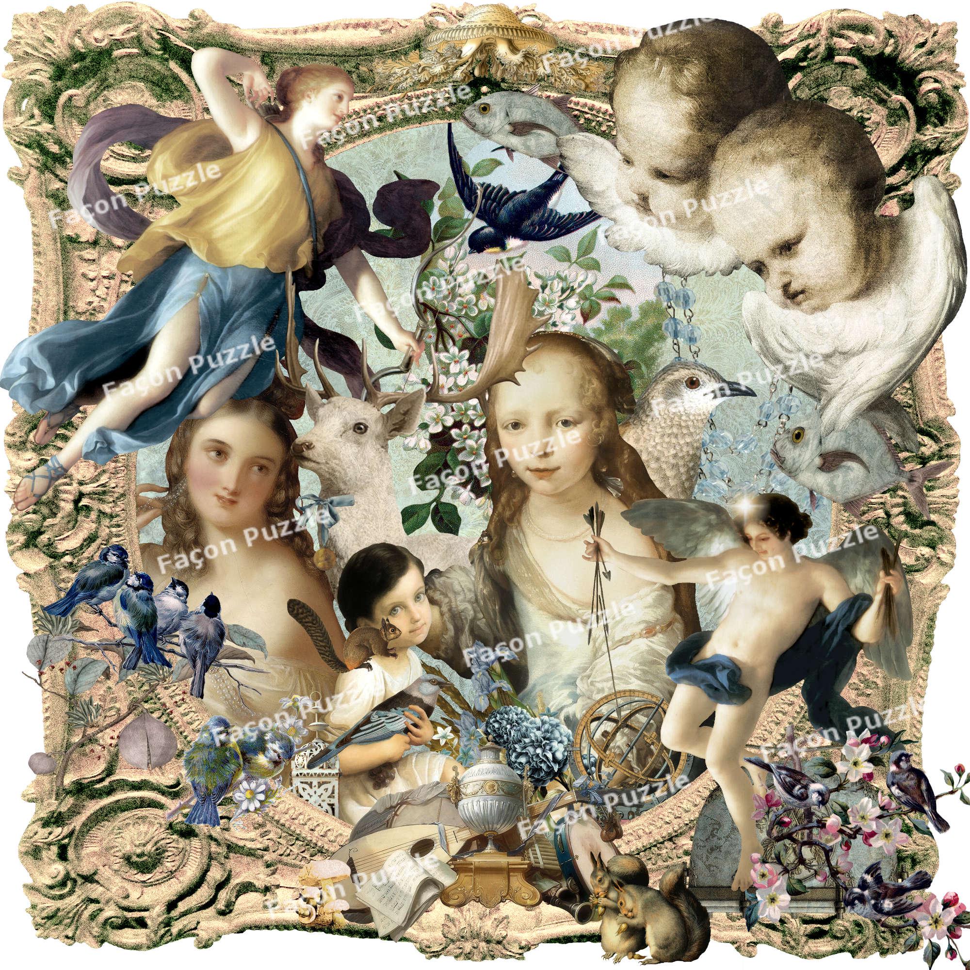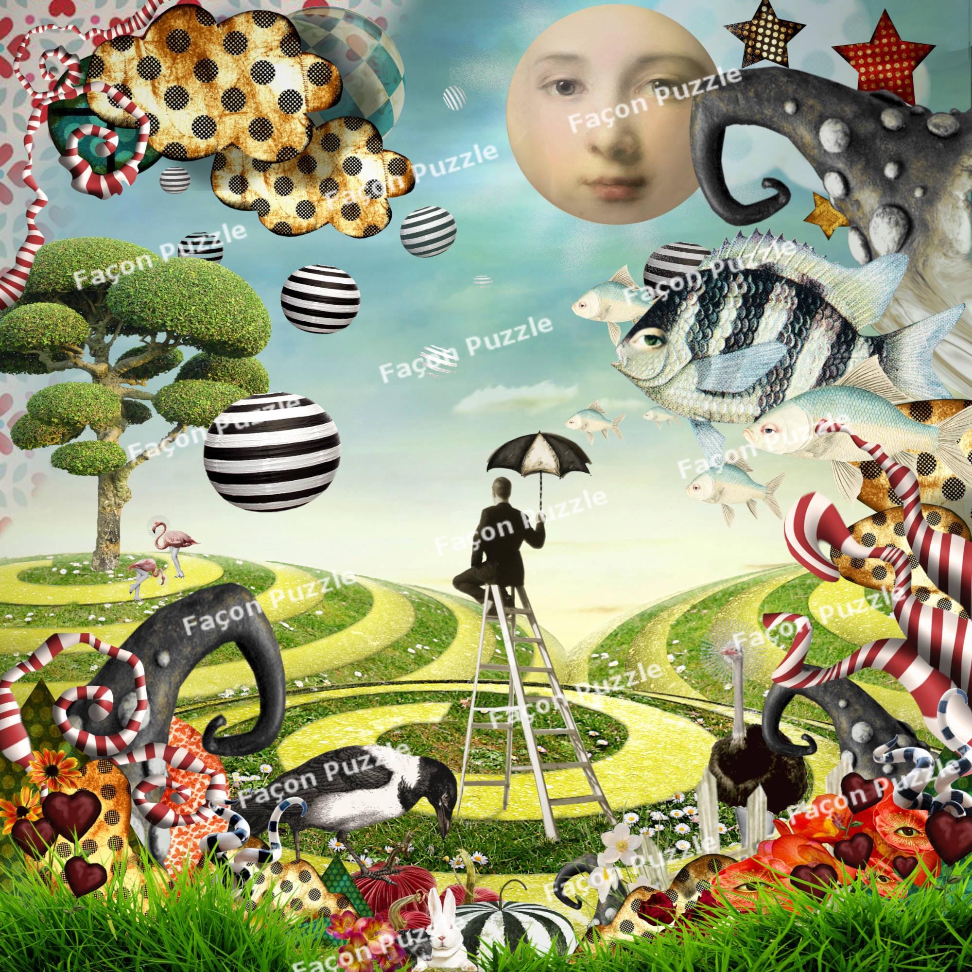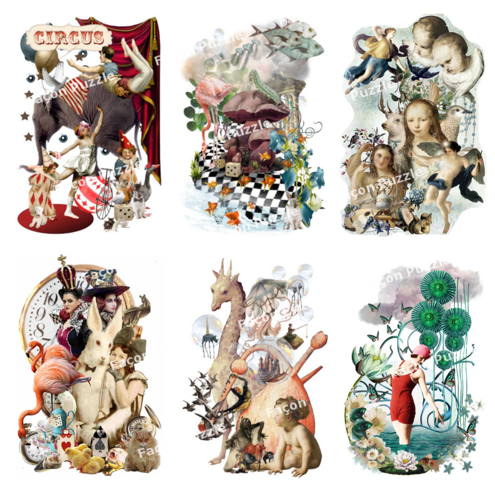 Alice, partie de campagne (2016). One of the earliest collages, and most popular. Dozens rabbits are hiding among the pieces.